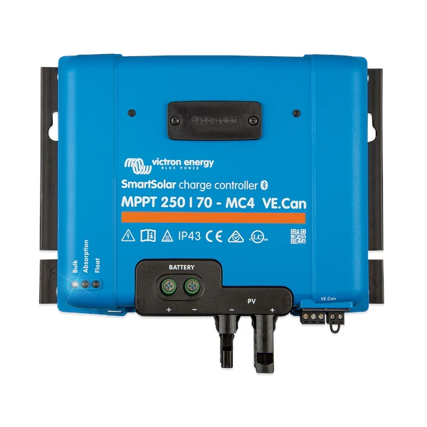 Controlerul solar Victron Energy SmartSolar MPPT 250/70-MC4 VE.Can este un model de inalta performanta, proiectat pentru instalatii fotovoltaice care necesita tensiuni solare ridicate si curent de incarcare consistent. Cu o tensiune maxima de intrare de pana la 250V si un curent de incarcare de 70A, acest model este ideal pentru instalatii cu siruri de panouri conectate in serie, asigurand eficienta optima si pierderi minime.